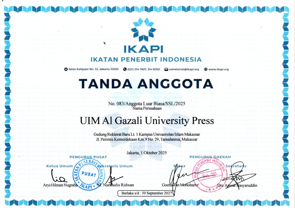 UIM Al Gazali University Press adalah lembaga penerbitan resmi di bawah Universitas Islam Makassar (UIM) Al Gazali, yang berkomitmen untuk mendiseminasikan karya-karya berkualitas berbasis nilai-nilai keislaman dan keilmuan universal. Sebagai sarana pengembangan intelektual, lembaga ini bertujuan memfasilitasi dosen, peneliti, mahasiswa, praktisi dan penulis secara global dalam menerbitkan buku teks, monograf, hasil penelitian, serta karya tulisan lainnya yang mendukung Tri Dharma Perguruan Tinggi dan penyebaran literasi keilmuan di masyarakat.